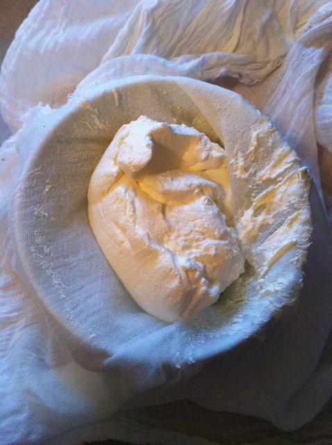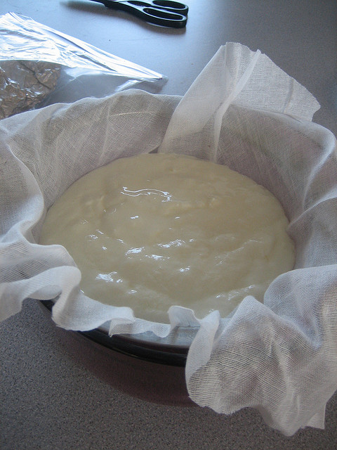 מרפדים את הקערה השניה בחיתול ושופכים לתוכו את היוגורט.
