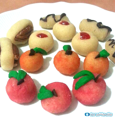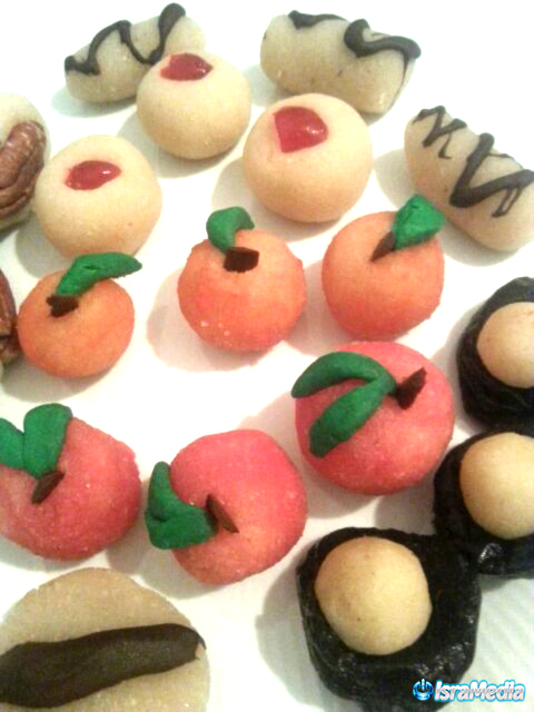 עוגיות מרציפן בצורת פירות כמו תפוח ותפוז - לוקחים חתיכה מבצק המרציפן מערבבים עם מעט צבע מאכל (רצוי צבע מאכל טבעי) ויוצרים את צורת הפרי. ניתן ליצור את העלה מבצק המרציפן.