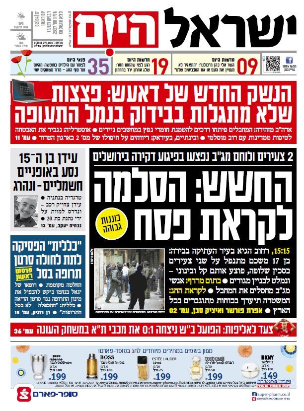 שער עיתון ישראל היום – 02.04.2017
