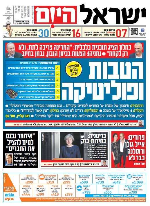 כותרות עיתונים 19/04/2017 - ישראל היום /ידיעות אחרונות