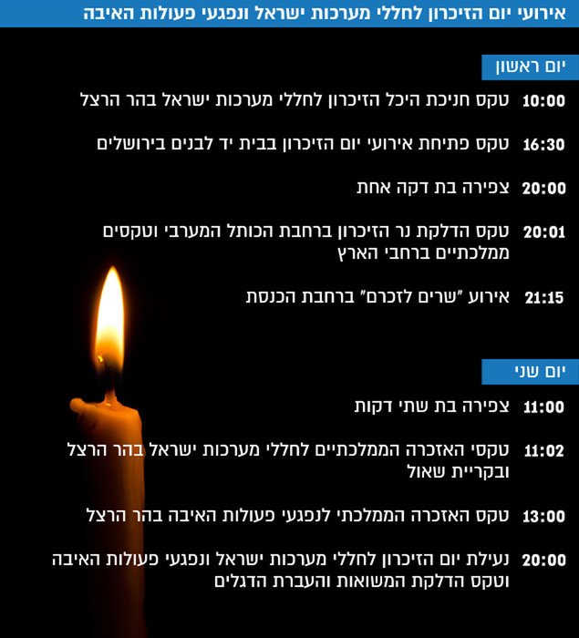 הערב ב־20:00 תעמוד מדינת ישראל דום לזכרם של 23,544 הנופלים במערכות ישראל ו־3,117 חללי פעולות האיבה • מחר: כמיליון וחצי בני אדם צפויים לפקוד את בתי העלמין הצבאיים ברחבי הארץ