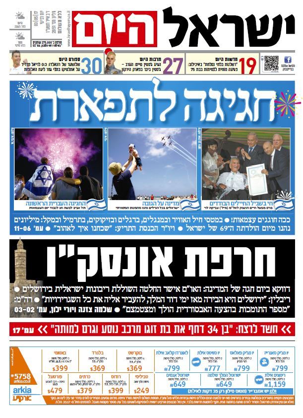 • כותרות עיתונים 03/05/2017 - ישראל היום /ידיעות אחרונות תמונה מצורפת וידאו מצורף