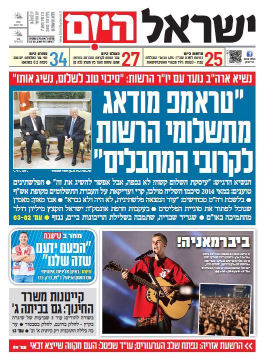 שער עיתון ישראל היום – 04.05.2017