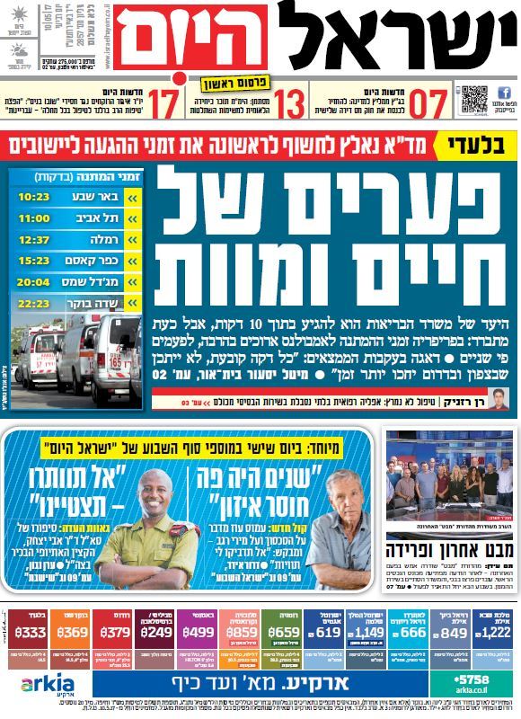 כותרות עיתונים 10/05/2017 - ישראל היום /ידיעות אחרונות