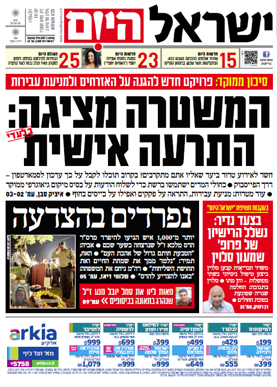 • כותרות עיתונים 19/06/2017 - ישראל היום /ידיעות אחרונות תמונה מצורפת וידאו מצורף