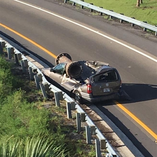 כשחזוס ארמנדו אסקובר נהג ברכבו ביום שבת האחרון, הוא לא ציפה כי לפתע ייפול על רכבו צינור עצום במיוחד שיימעך את הרכב. הוא אמנם לא זוכר את התאונה המוזרה, שקרתה לאחר שמשאית התהפכה, אך הוא יצא ממנה עם פציעות קלות מאוד. "זה יכול היה להיגמר בטרגדיה", אמר עורך דינו
