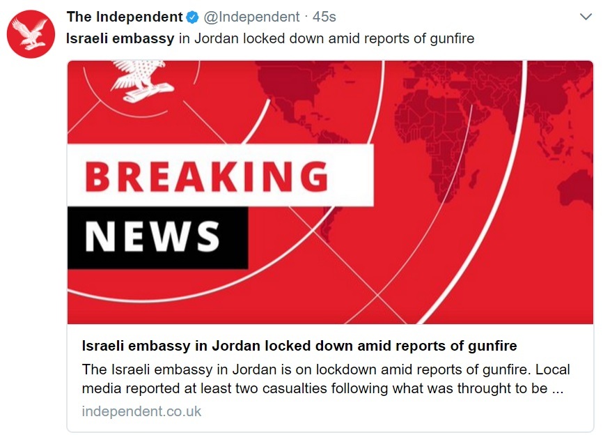 • כלי תקשורת ירדנים מדווחים על תקרית בשגרירות ישראל בירדן