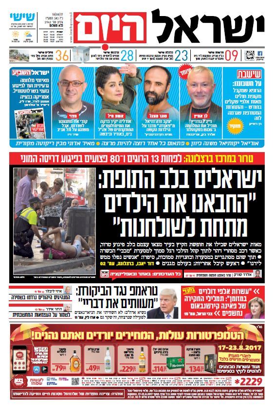 • כותרות עיתונים 18/08/2017 - ישראל היום /ידיעות אחרונות תמונה מצורפת וידאו מצורף