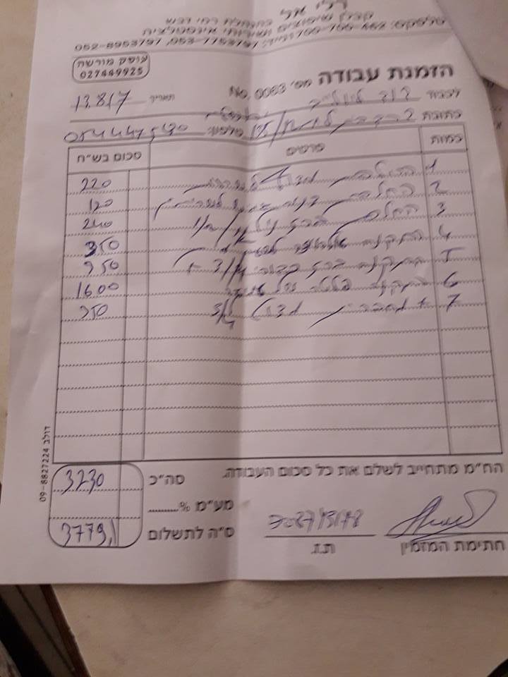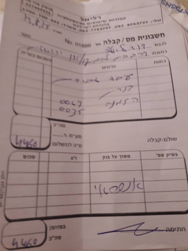 דרך אגב גם המע"מ שנגבה באחת ההזמנות אינו נכון, במקום 68 ש"ח גבה האינסטלטור מעמ 280 ש"ח סכום הגבוהה פי כמה מהמע"מ הנכון. בנוסף נגבו עוד 800 ש"ח במזומן שנתן לו הקשיש, כסף שלא נרשם ולא ניתנה בעבורו שום קבלה.