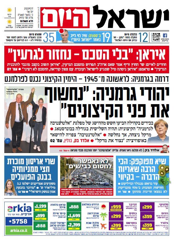 כותרות עיתונים 25/09/2017 - ישראל היום /ידיעות אחרונות