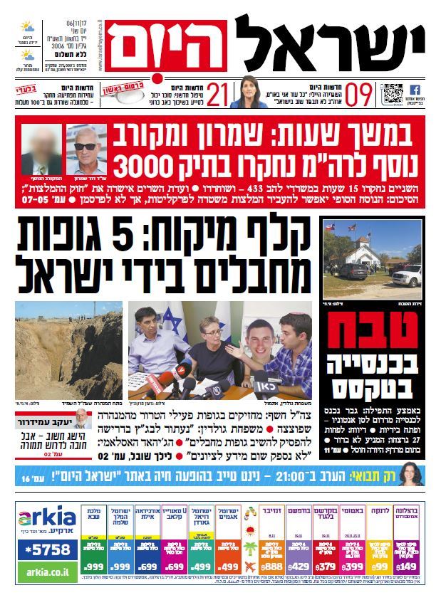 כותרות עיתונים 06/11/2017 - ישראל היום /ידיעות אחרונות