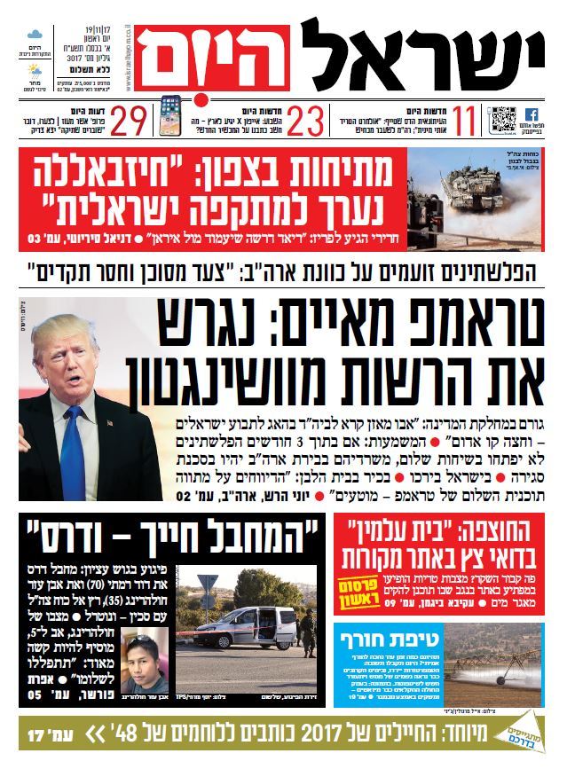 כותרות עיתונים 19/11/2017 - ישראל היום /ידיעות אחרונות