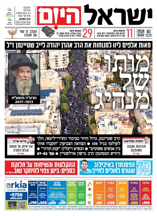כותרות עיתונים 13/12/2017 - ישראל היום /ידיעות אחרונות