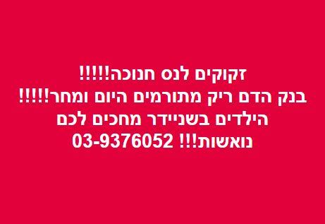 או להתקשר לבנק הדם בבית חולים בלינסון בטלפון 03-9376052/03-9377023