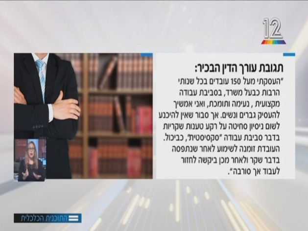 ערוץ 12: עורך דין בכיר הטריד עובדת מינית