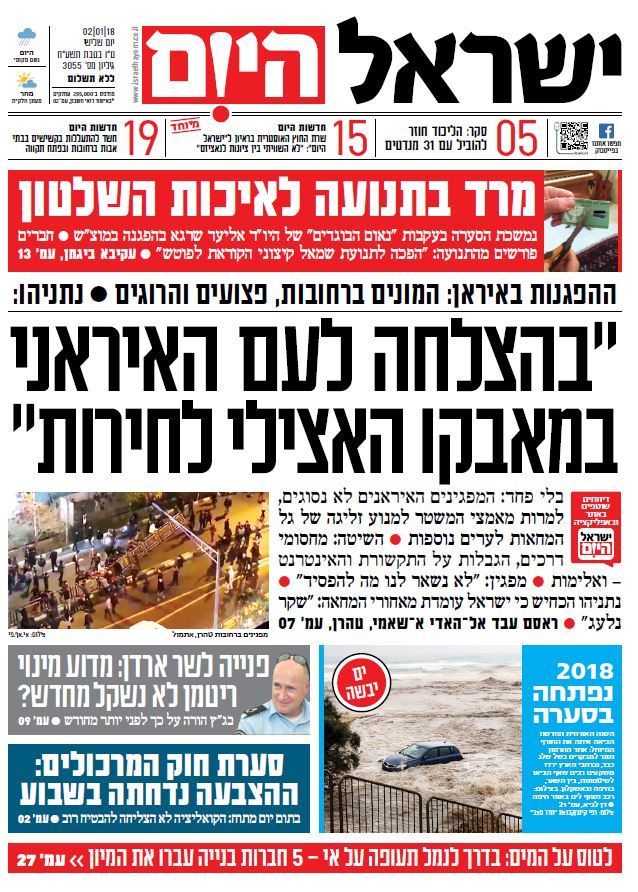 שער עיתון ישראל היום – 02.01.2018