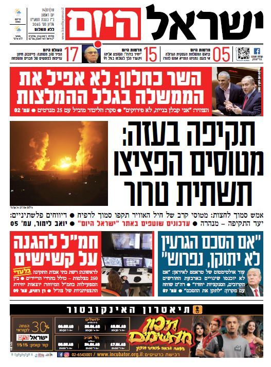 שער עיתון ישראל היום – 14.01.2018