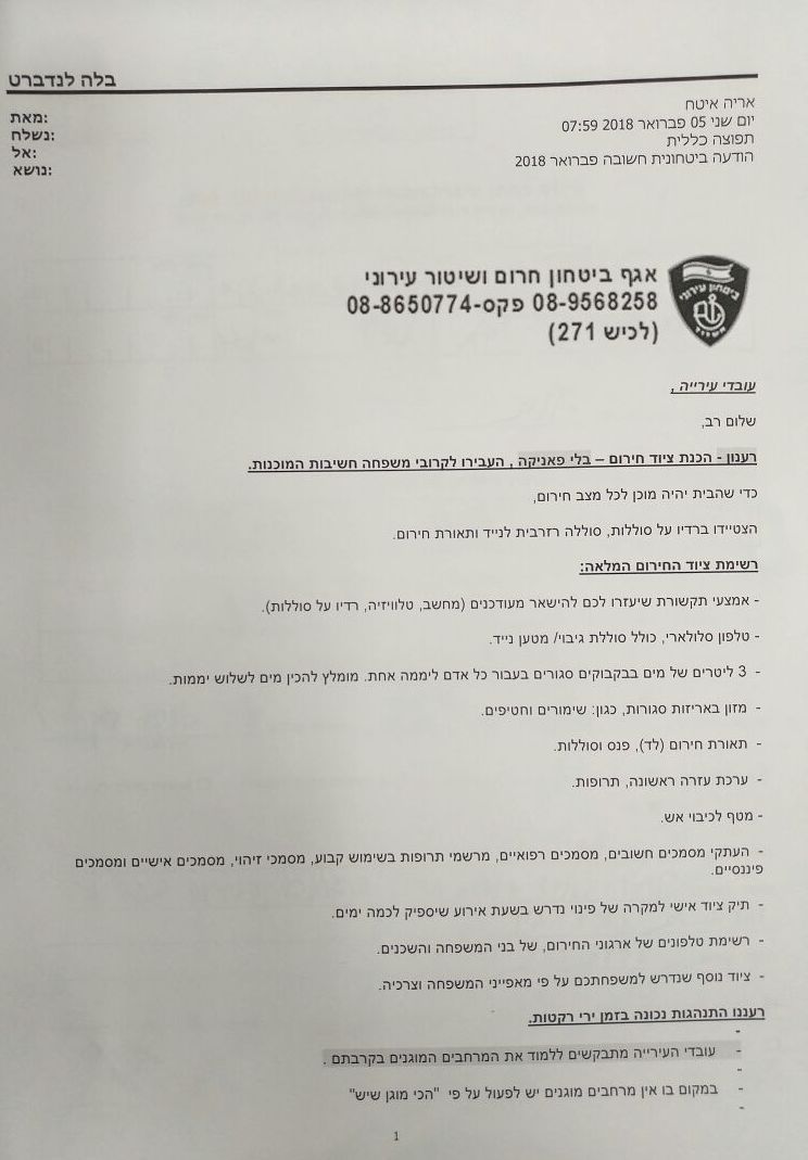 האגף לבטחון וחירום לכיש 271 בהודעה יוצאת דופן לכל עובדי עיריית אשדוד