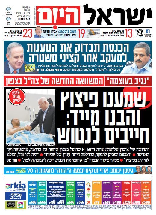 כותרות עיתונים 12/02/2018 - ישראל היום /ידיעות אחרונות