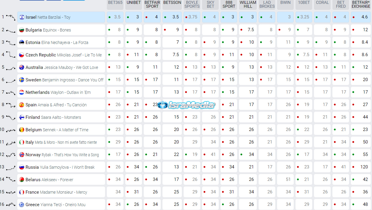 אתרי ההימורים ממשיכים להתעדכן בניחוש תוצאת האירוויזיון 2018, ובנתיים יש משהו אחד שלא השתנה - המקום הראשון של נטע ברזילי.