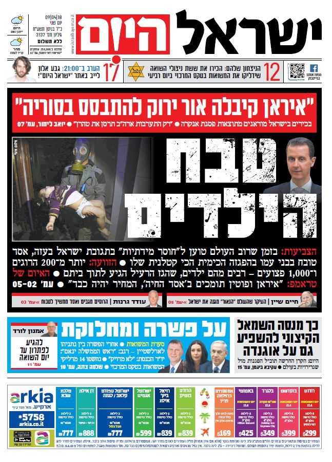 כותרות עיתונים 09/04/2018 - ישראל היום /ידיעות אחרונות