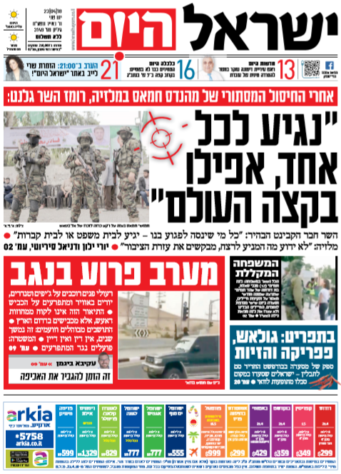• כותרות עיתונים 23/04/2018 - ישראל היום /ידיעות אחרונות תמונה מצורפת וידאו מצורף