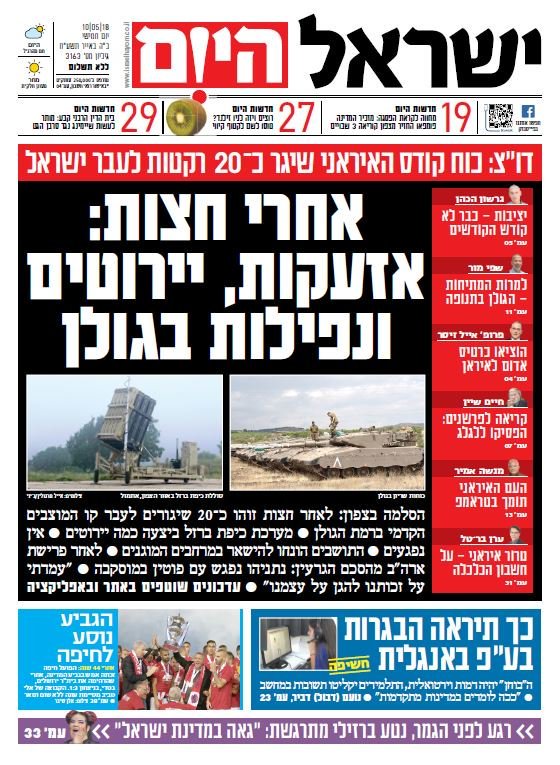 כותרות עיתונים 10/05/2018 - ישראל היום /ידיעות אחרונות