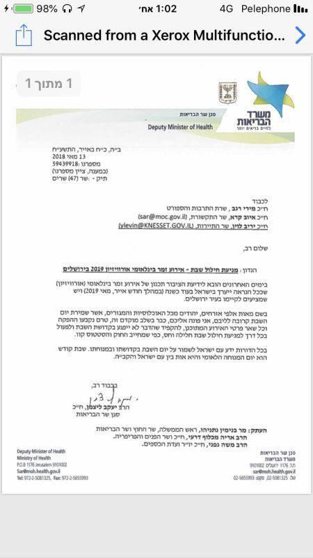 ולגבי הערתך העוקצנית, השר לי צמן הוא לדעת כל קודמיו בתפקיד ורוב השרים והחכים ימין או שמאל, שר הבריאות הטוב ביותר שהיה בישראל מאז קום המדינה, ובתור שומר מצוות זכותו ואף חובתו לדאוג לשמירת השבת במרחב הציבורי בהתאם לסטטוס קוו, אגב בג'יירו איטליה חיללו שבת בהמונים בחיפה ותל אביב שהמירוץ נערך בשבת, והחרדים לא צייצו כי בירושלים זה היה ביום שישי לפני כניסת השבת!