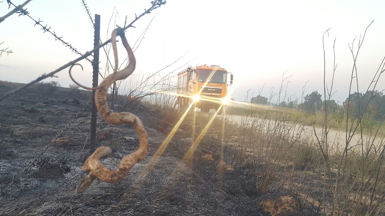 מגישי האקטואליה ברדיו דרום, מנדי ריזל ואמנון סופר המתגוררים בעוטף יצאו לסיור בין שדרות לניר עם כדי לאמוד מקרוב את הנזקים, וגילו את שני הנחשים החרוכים האלו בשדות השרופים