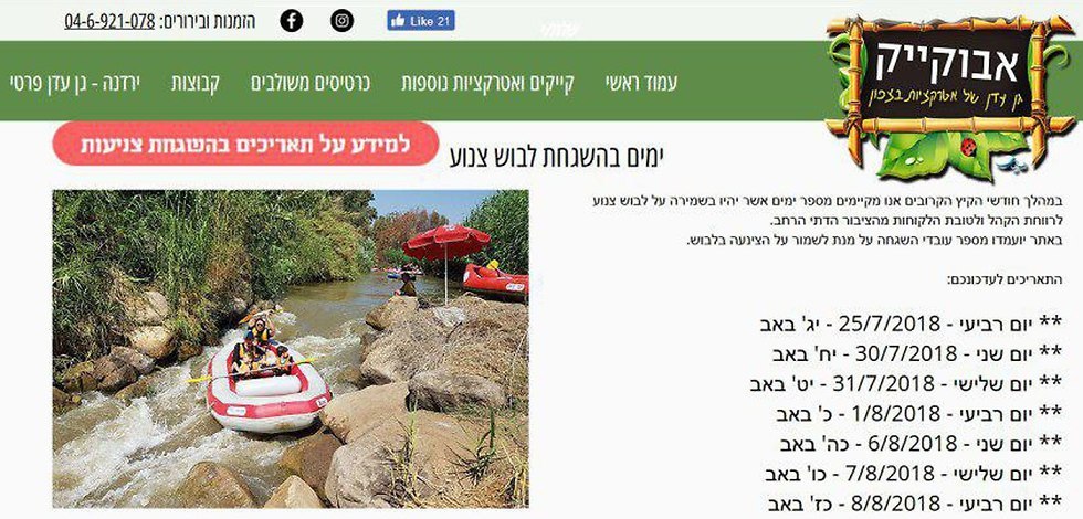 באתר "אבוקייק" שבנהר הירדן בודקים בכניסה את לבוש הנשים. מדריך טיולים: "לגברים הותר להיכנס בגופיות, חלקם הסתובבו בלי חולצות". "אבוקייק" בתגובה: "95% מאורחינו - דתיים"