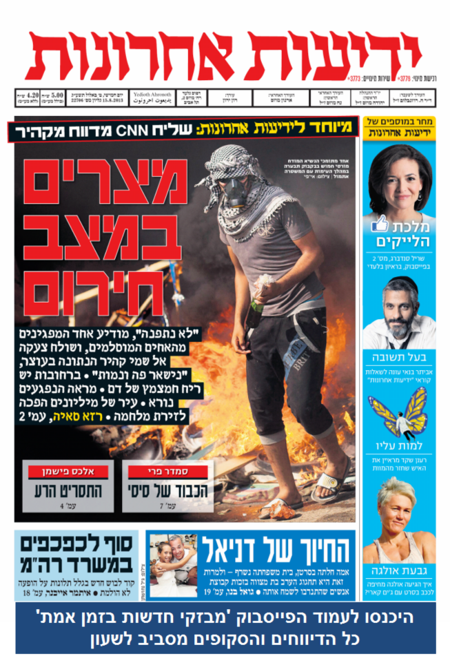 כותרות עיתונים - 15/08/13 - ידיעות אחרונות