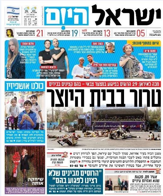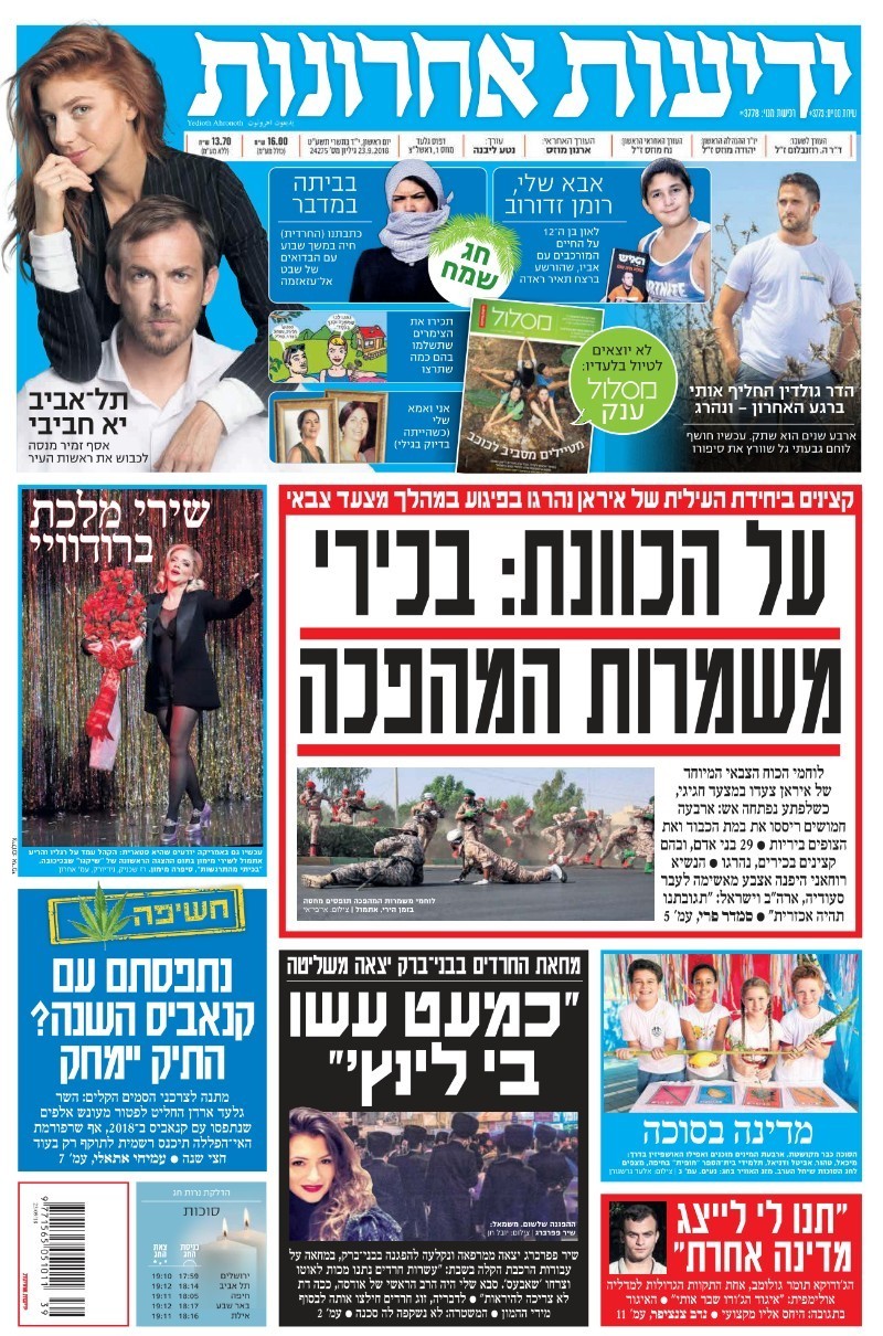 שער עיתון 'ידיעות אחרונות - 23.9.2018