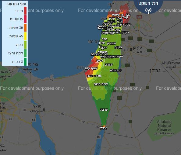 באזור מרכז הנגב וחלק מיישובי לכיש, התושבים נדרשים לשהות בקרבה למרחבים מוגנים ולהיכנס למיגון בהתאם לפרק הזמן העומד לרשותם.