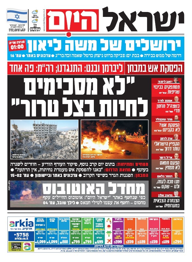כותרות עיתונים 14/11/2018 - ישראל היום /ידיעות אחרונות