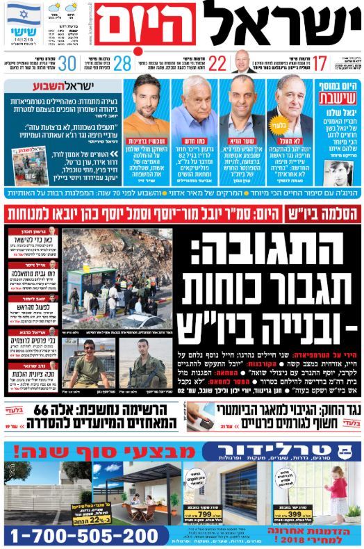 כותרות עיתונים 14/12/2018 - ישראל היום /ידיעות אחרונות