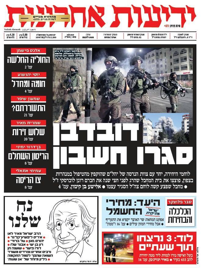 כותרות עיתונים 16/12/2018 - ישראל היום /ידיעות אחרונות