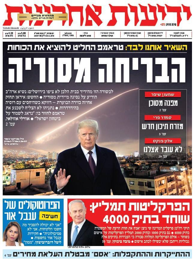 כותרות עיתונים 20/12/2018 - ישראל היום /ידיעות אחרונות