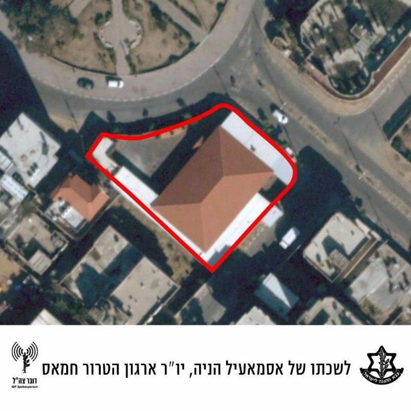 דובר צה"ל מוסר כי מטוסי קרב של צה"ל תקפו כעת את לשכתו של יושב-ראש ארגון הטרור חמאס, איסמעיל הנייה הממוקמת בשכונת רימאל בצפון רצועת עזה.