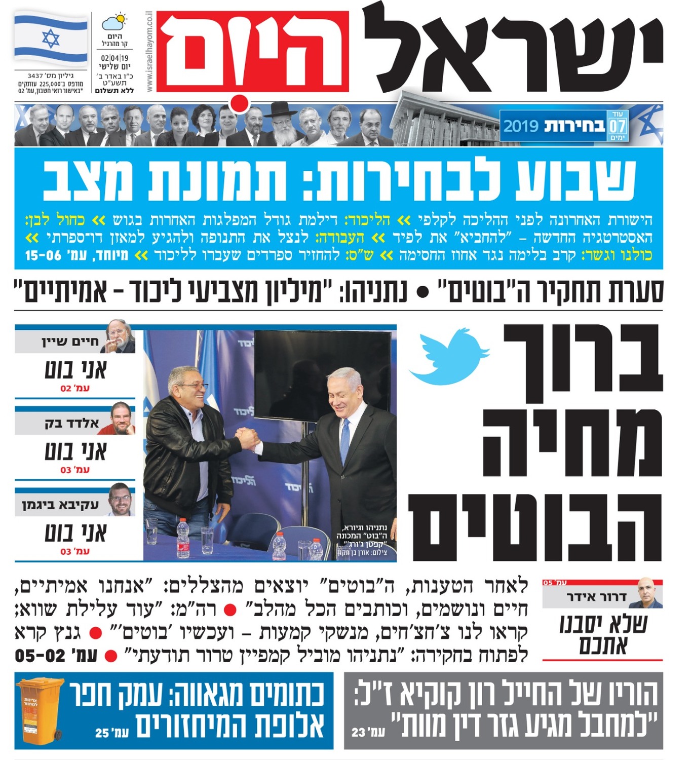 כותרות עיתונים 02/04/2019 - ישראל היום /ידיעות אחרונות