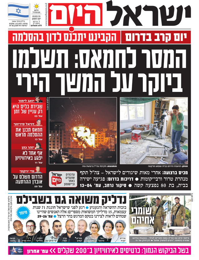 כותרות עיתונים 05/05/2019 - ישראל היום /ידיעות אחרונות
