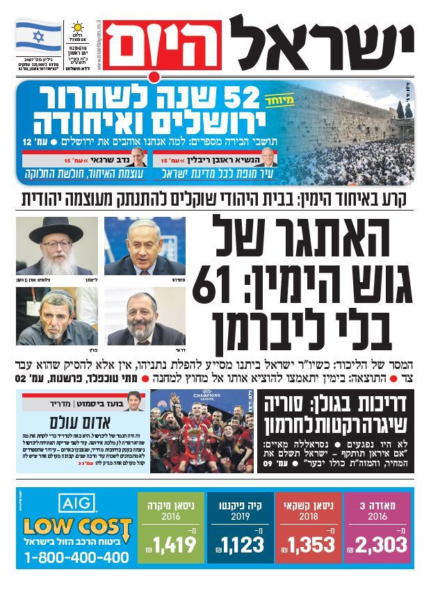 כותרות עיתונים 02/06/19- ישראל היום /ידיעות אחרונות