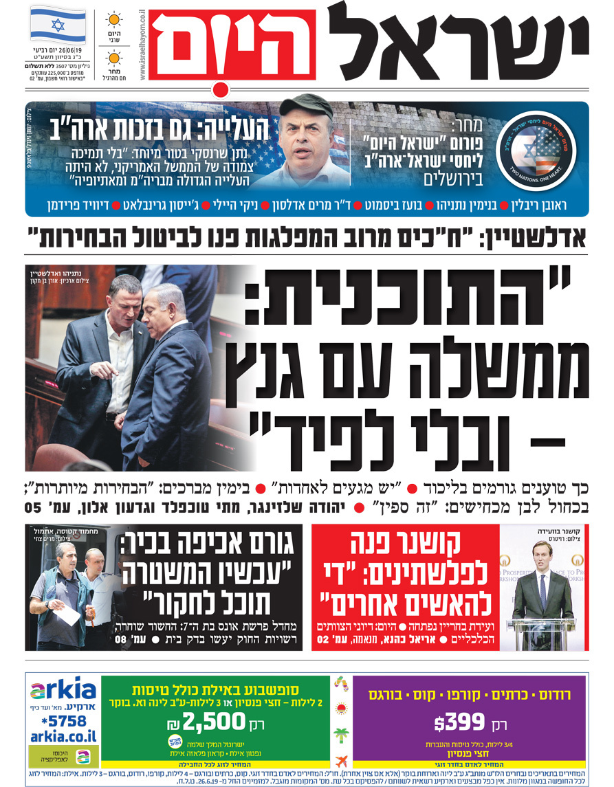 שער עיתון ישראל היום – 26.06.2019