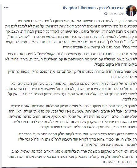 כך רושם אביגדור ליברמן מ"ישראל ביתנו" בפייסבוק שלו, אבל זה לא מספיק ! מי ידאג לזה שאחד כמו איימן עודה מהרשימה המשותפת לא ישב בממשלה של מדינה שהוא לא נמנה על אוהביה? https://www.facebook.com/AvigdorLiberman/photos/a.207272762619013/2727640980582166/?type=3&theater