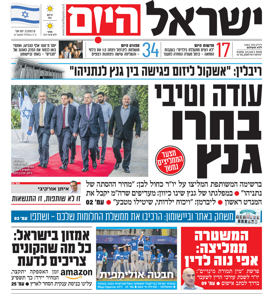 כותרות עיתונים ישראל היום/ ידיעות אחרונות 23/9/2019