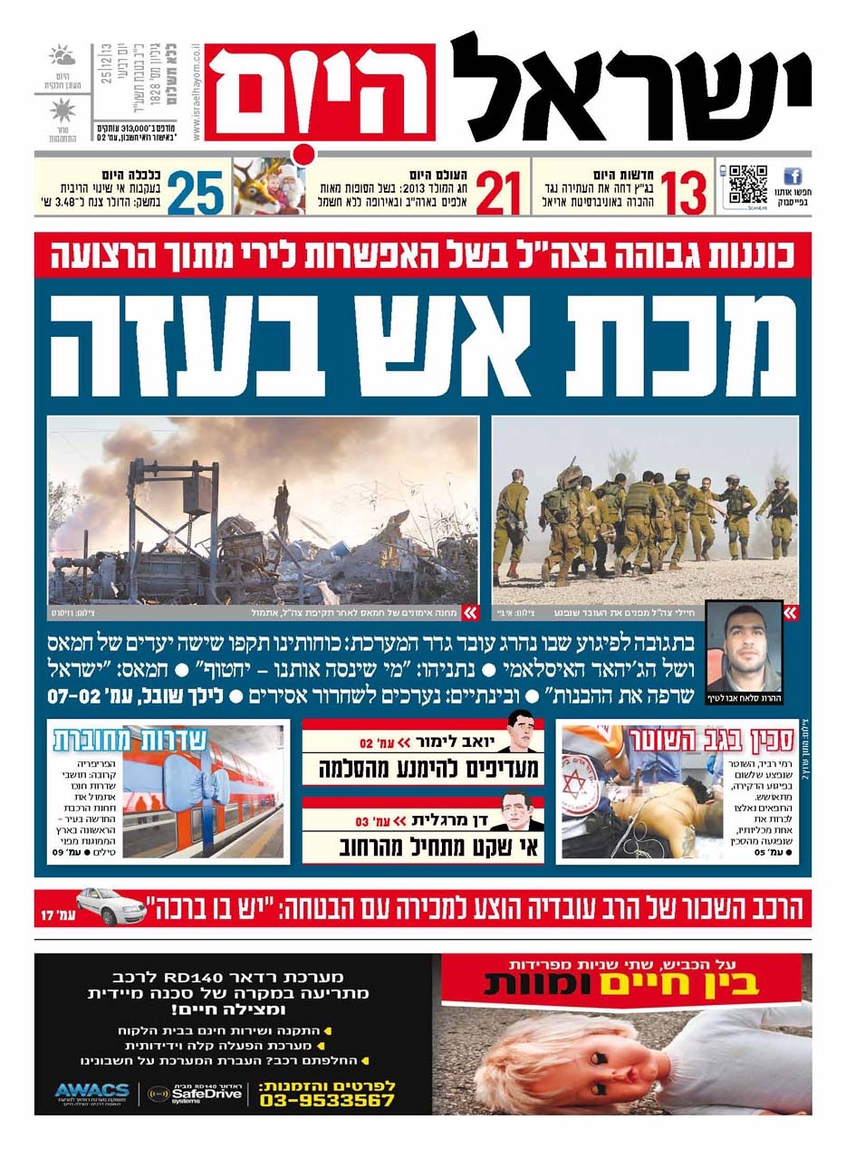 כותרות עיתונים 25/12/2013 - ישראל היום