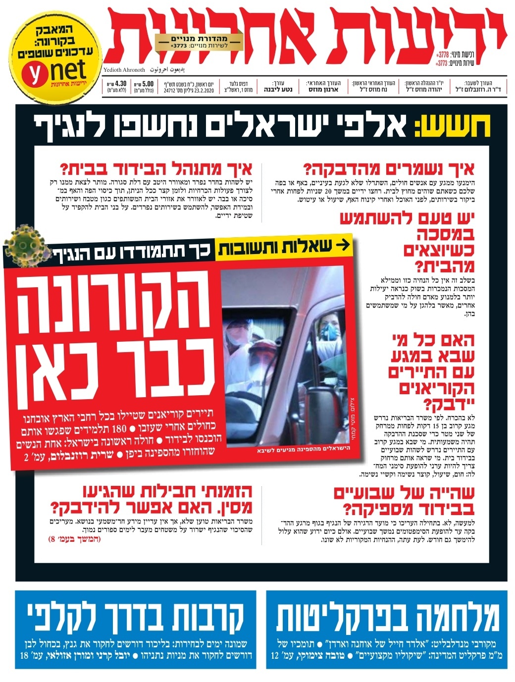 שער עיתון ידיעות אחרונות – 23.02.2020