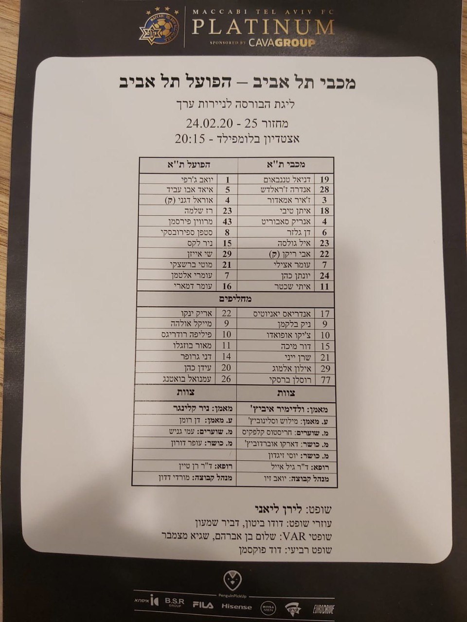 • הרכבי הקבוצות בדרבי תמונה מצורפת