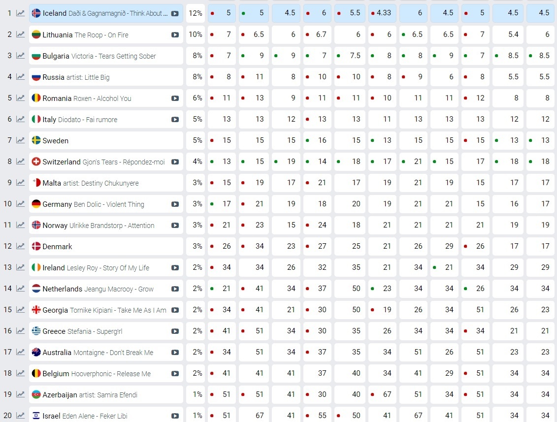 • אירוויזיון 2020: ישראל במקום ה-20 בהימורים, צפו בטבלה המלאה תמונה מצורפת
