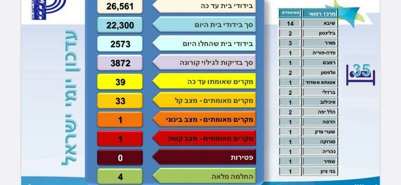 • תמונת מצב עדכנית של מספר חולים בישראל והיכן מאושפזים תמונה מצורפת