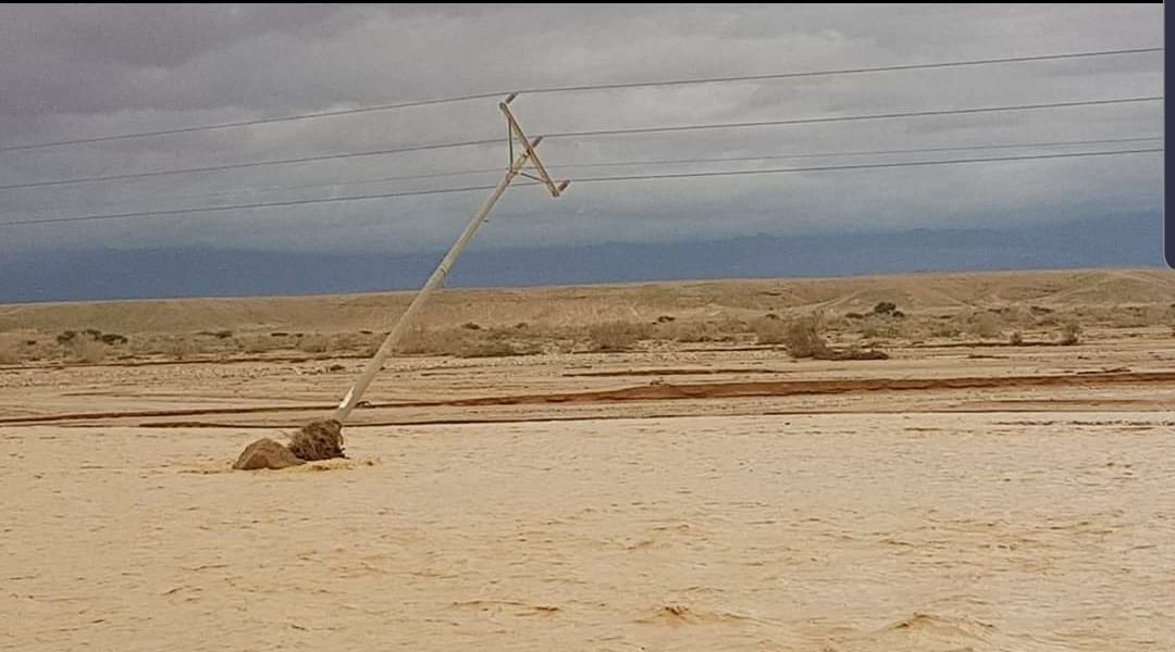 עמוד חשמל שנפגע בשטפון בנחל פארן